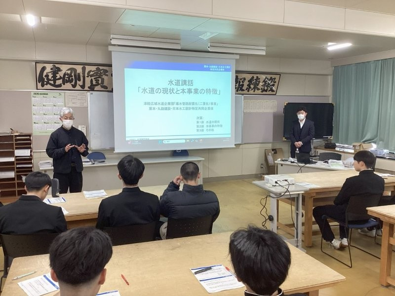 令和8年1月28日に青森県立弘前工業高等学校 土木科二年生、1月30日に青森県立青森高等技術専門校 土木施工管理・測量科で水道講話を以下の内容で行いました。